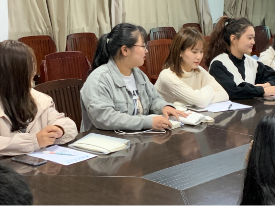 接着,全体班委按照顺序进行了近期的工作汇报并提出自己在工作上存在的不足。辅导员徐倩在听取了班委的汇报后,对班委近期工作表示一定的肯定,同时对班委工作存在的缺失和不足提出了意见。接下来针对班级建设存在的不足,在场的班委积极发言提出了众多建议,并对后期班级工作进行了初步的规划。