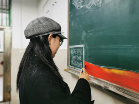 11月23日下午到达教室后,同学们首先对旧的板报进行了清理,两位男同学搬来长椅,方便清理,清洁工作有条不紊地开展了。随后,同学们在干燥的黑板上开始用粉笔规划图片与文字布局,并进行了区域分工。紧接着,按照安排好的分工,同学们先在黑板上画出了底稿。在王佳懿同学的调色和指导下,同学们开始分工用颜料填色。期间,班长吕聿炀同学,丁瑞欣同学及马加星同学前来帮忙,大大加快了工作进度。下午五点左右,所有的图片填色工作已经完成,前期绘图工作告一段落。