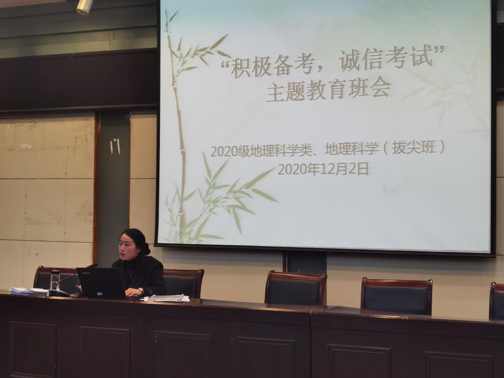 汪琦 彭媛媛 )期末考试复习月,为进一步强化班风学凤,提醒同学们积极迎考备考诚信考,2020年12月2日,2020级地理科学类、地理科学(拔尖班)于91论坛