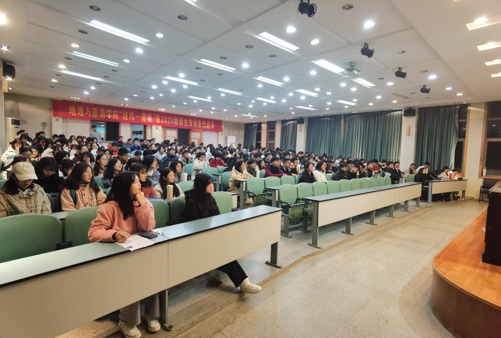 2020级地理科学类和地理科学(拔尖班)全体同学参加会议。会议由辅导员彭媛媛主持。