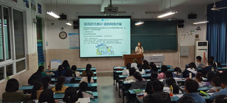 还邀请高校园区派出所的周英坤警官在院实验楼101报告厅开展以“平安校园,你我同行”为主题的校园安全讲座,通过具体的案例帮助同学们了解涉嫌诈骗和虚假的信息,并提醒同学们时刻将“安全”二字记在心间。