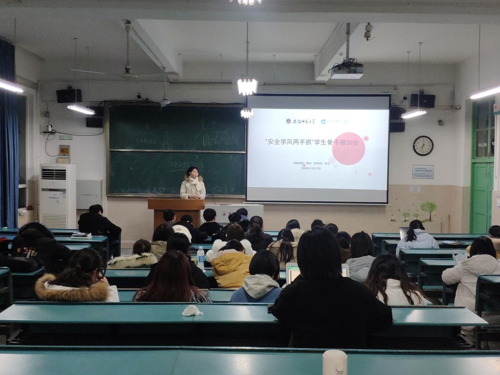 潘爽 张慧)为增强安全意识、加强学风建设,2020年12月17日晚,辅导员张慧主持召开了“安全学风两手抓”学生骨干培训会。2018级城乡规划、2018级地理科学(非师范)专业全体班委、寝室长及党员等学生骨干出席会议。