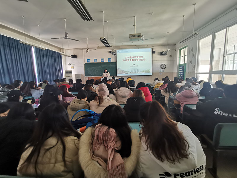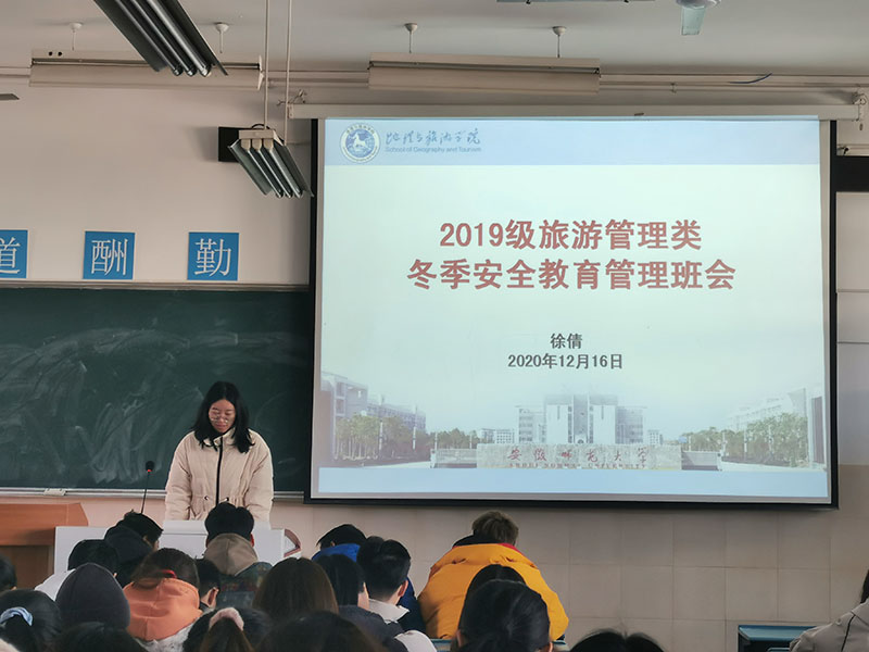 贾燕妮)为增强同学的安全防范意识与避险能力,保障学生安全,2020年12月25日,辅导员徐倩老师组织开展了旅游管理专业大类冬季安全教育管理班会。2019级旅游管理类专业的全体同学参加了此次班级例会,班会由徐倩老师主持。