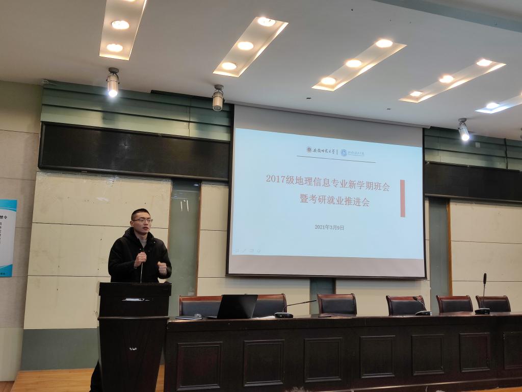 章莹莹)为更好的帮助毕业班学生适应新学期生活、明确新学期的任务和引导推进同学们的考研就业情况,3月9日下午,2017级地理信息科学专业于91论坛
