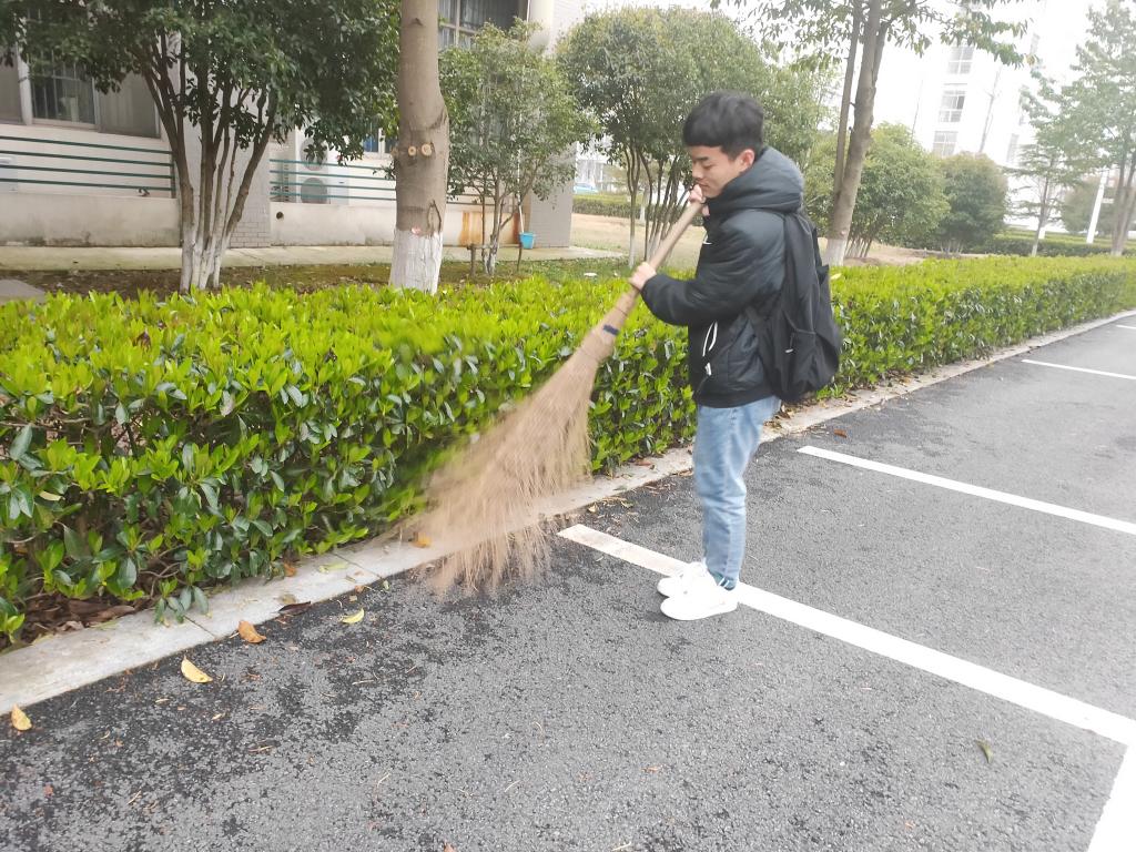 楼东、北两角,同学们以寝室为单位按照安排好的值日表进行定期的清扫。尽管学习任务繁重,天气恶劣,但是同学们依旧坚持完成值日任务,保持卫生区的干净整洁,获得了老师们和辅导员的一致好评。自2020年9月14日至2020年12月30日,2018级地理科学(师范)班卫生区打扫都在如期进行,每天的值日照片记录了同学们劳动的点滴,也成为了一段难忘的回忆。