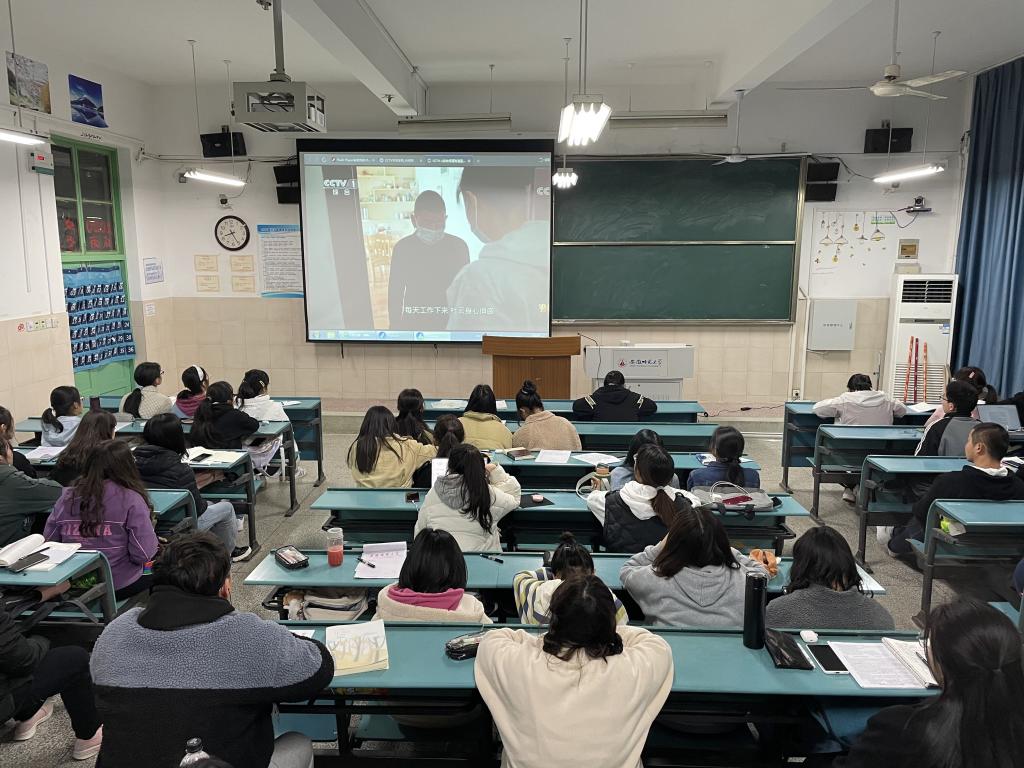 赵佳慧 徐雨菲)人无精神则不立,国无精神则不强。为宣传伟大抗疫精神、集中展现新冠肺炎疫情防控阻击战中先进基层党组织和优秀共产党员风采、深化“不忘初心、牢记使命”主题教育,3月22日晚上8点,2020级旅游管理专业全体同学在204教室观看《榜样5》专题节目。团支部全体团员通过集中观看,线上和线下感悟分享等多种形式汲取榜样的力量,从而营造团结鼓劲、弘扬正气的浓厚氛围。