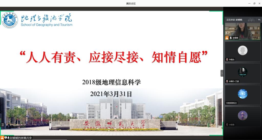 2018级地理信息科学专业开展清明与实习安全暨疫苗接种政策宣讲线上主题班会
