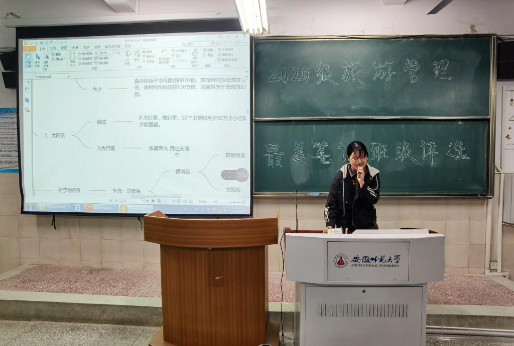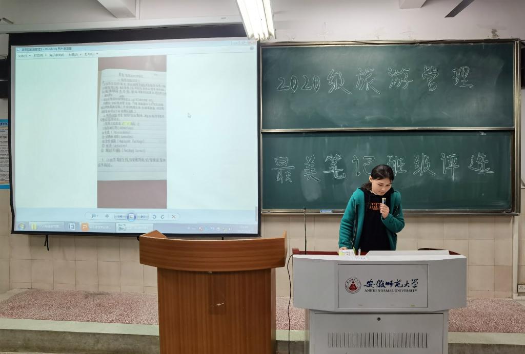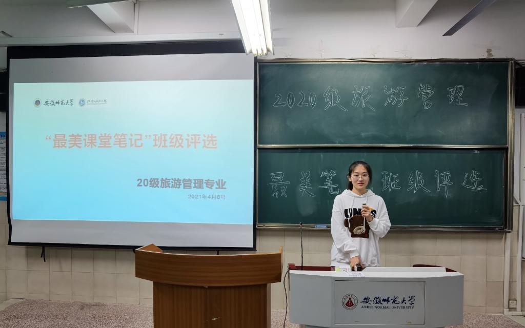赵佳慧 吴思慧 孙云峰)着手“跳动”字符,记录美好年华。为推动良好学风的养成,帮助同学们养成良好的学习习惯。4月8日晚, 2020级旅游管理专业开展在4号教学楼203教室组织开展“2020级旅游管理专业第二届最美笔记”评选活动。此次活动由班级学习委员徐晖主持,2020级旅游管理专业全体同学参与。