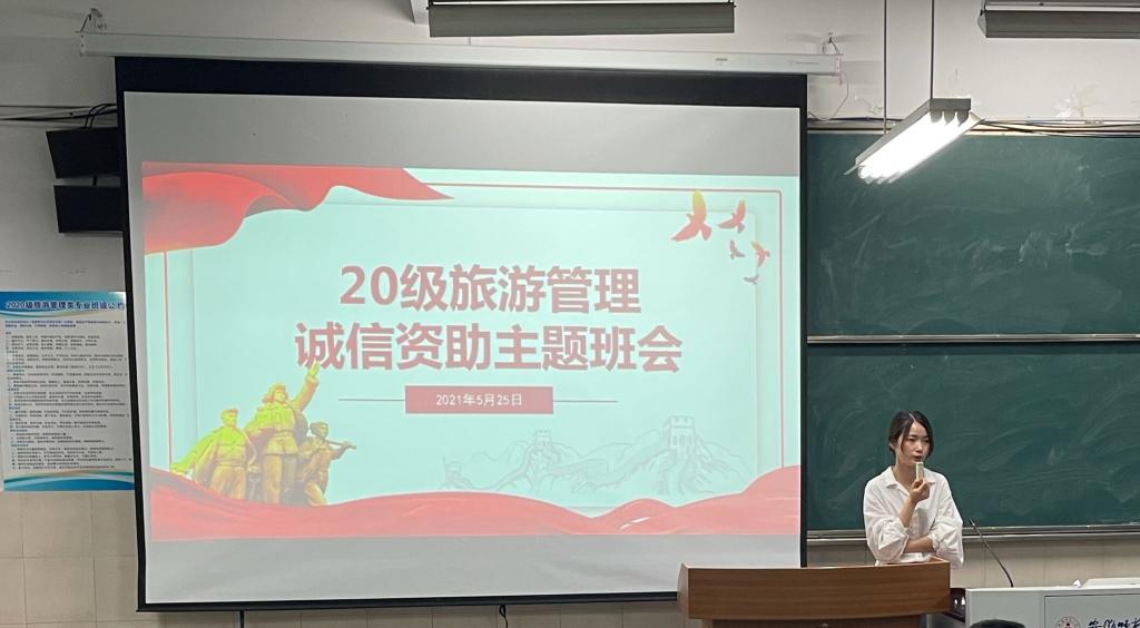 非常重视的一项重要工作。辅导员赵佳慧希望20级旅游管理专业的同学们通过此次班会可以提高自己的诚信意识,做一个讲信、履信的新时代大学生。