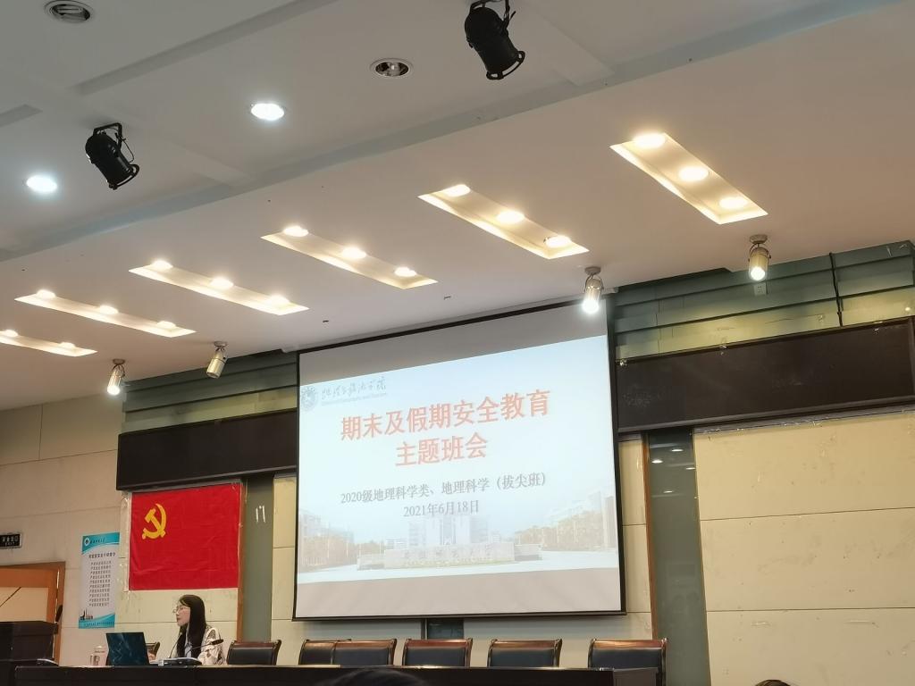 2020级地理科学类、地理科学(拔尖班)于2021年6月18日下午在院101报告厅开展期末及假期安全教育主题班会,会议由辅导员彭媛媛主持, 2020级地理科学类、地理科学(拔尖班)全体学生参与。