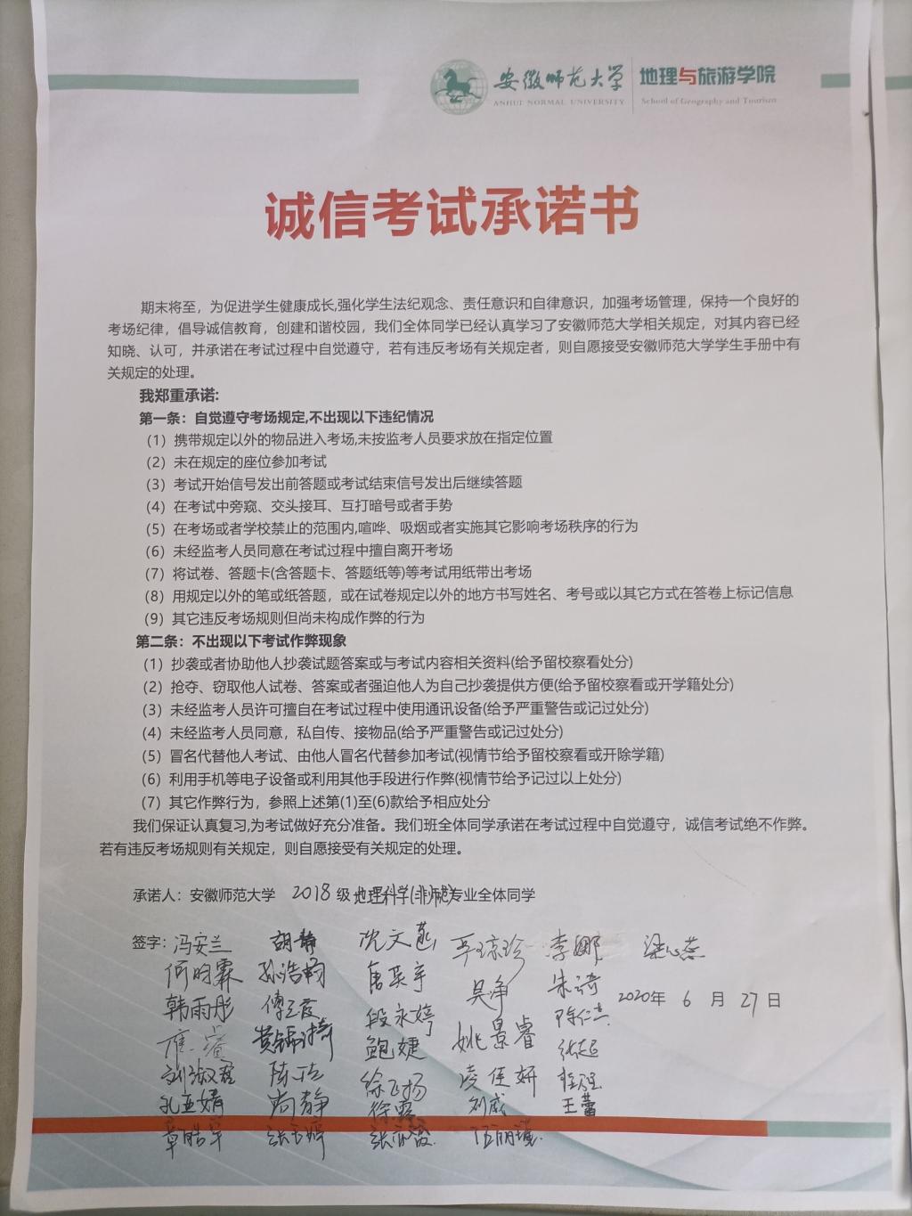 张慧 李娜 潘爽)2021年6月23日晚,2018级地理科学(非师范)专业及2018级城乡规划专业“严于律己 以诚参考”诚信考试主题班会在行知楼4号楼104顺利举行。班会由辅导员张慧主持,2018级地理科学(非师范)专业及2018级城乡规划专业全体同学参加。
