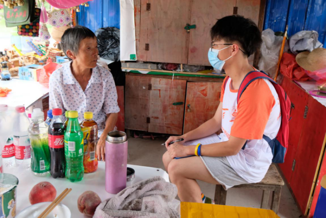 (图片2 队员采访景区周围的店铺商贩 刘开颜/摄)