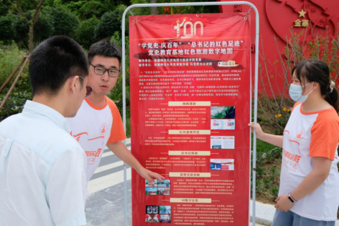 推出的“总书记的红色足迹”红色旅游数字地图进行了宣传讲解。辅导员赵佳慧与团队成员们向分别向景区游客和当地居民进行了生动详细的宣传,都收到了良好的反馈,接下来调研团队也会进一步扩大宣传面,争取将数字地图这一成果展现给更多的金寨人民。