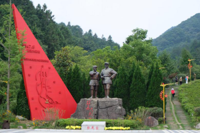 调研团队的第二站来到了刘邓大军千里跃进大别山前方指挥部,指挥部前庄严树立着刘伯承、邓小平两位伟人的塑像。为更好地传承和发扬红色文化和红军精神,金寨县政府再次修缮了指挥部整体构造,指挥部内以当年刘邓大军千里跃进大别山历史事件为轴心,以图文并茂、实物并举的形式,完整地讲述了刘邓大军千里跃进大别山前后的历史史实,再现了刘邓大军在大别山期间,克服各种困难,克敌制胜,不断创造战争上奇迹历史场景。这些遗址遗迹再现了当年红军的奋斗历史,展出的众多红军遗留历史文物,也为团队的调研提供了重要的参考。