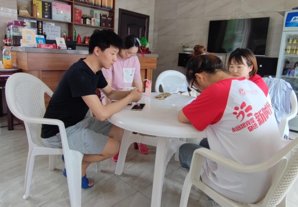图1 团队成员讨论当地农家乐情况(周爽 摄)