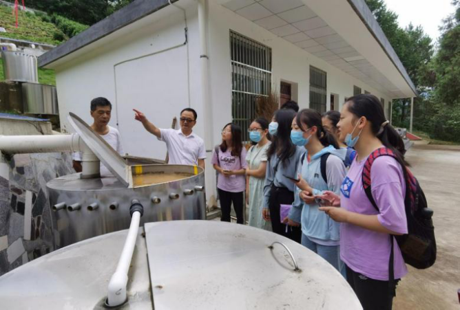 团队成员跟随汪站长的脚步,对实验站的相关仪器进行参观学习。汪站长首先给实践团队介绍的是径流小区,在径流小区中,分块小区种植红芋、油茶、茶叶以及桑树等作物,这些作物正是当地农户在实际的生产中种植的,完全模拟了当地农户的农业生产方式。当提到为何种植这些作物时,汪站长解释到,这个实验站当初设立的初衷就是监测水土流失状况,更好的为当地老百姓服务。所以各种实验条件包括种植作物在内都是根据当地实际情况,经过反复论证后敲定的。通过控制变量的方式测量和探究不同的作物对于径流的截流和水土保持情况的影响。径流小区还模拟了坡改梯措施对于径流的截流作用,并设置了空白样地(裸土)进行对照,使径流小区的实验更加严密。