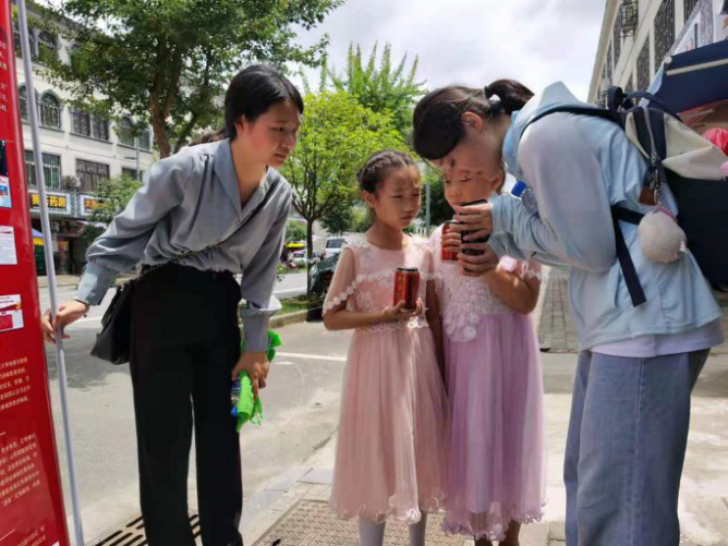 图6 团队成员给小朋友介绍红色旅游数字地图