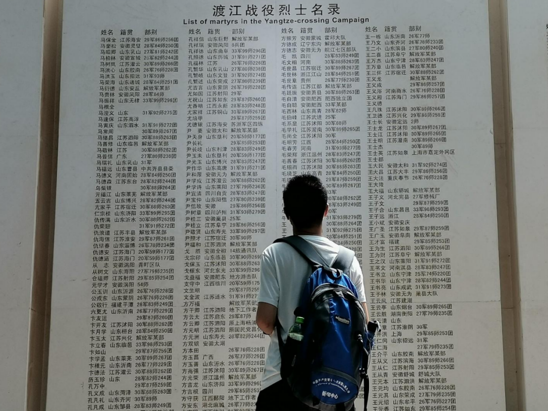 图2 队员在浏览渡江战役烈士名录(陈家乐 摄)