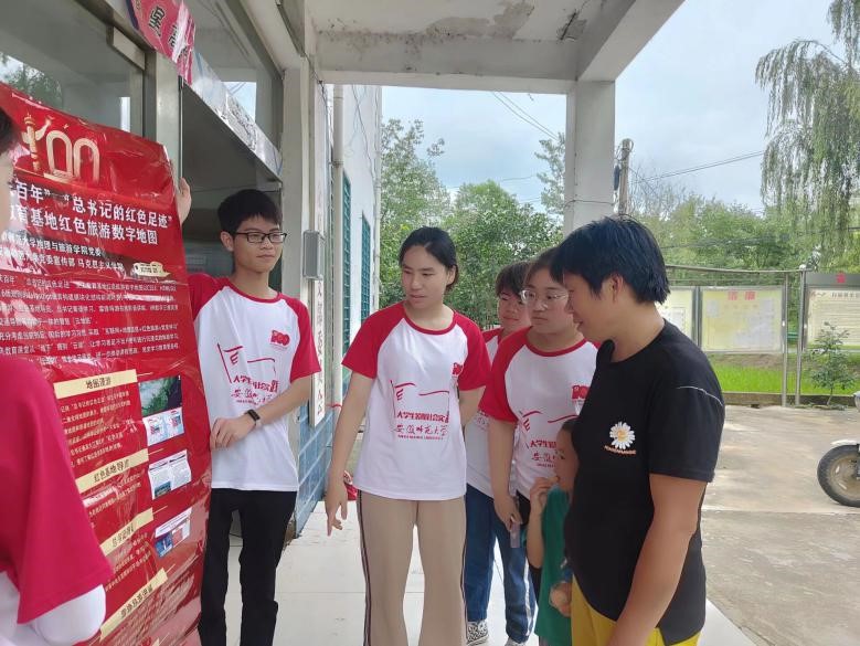 上午,在余夏村,队员们与村民们进行访谈,向村民们宣讲红色旅游数字地图党史学习教育。村民对此表现出了浓厚的兴趣,拿出手机扫码查看了“总书记的红色足迹”党史教育基地红色旅游数字地图,认真学习了“总书记的红色足迹”党史教育基地红色旅游数字地图的主要内容,对革命先辈们的伟大事迹和牺牲精神表达了崇高的敬意。队员们也通过讲解更加深刻地认识到了自己肩负的历史重任,纷纷表示一定要不忘初心、牢记使命,立足实践、奋斗青春。