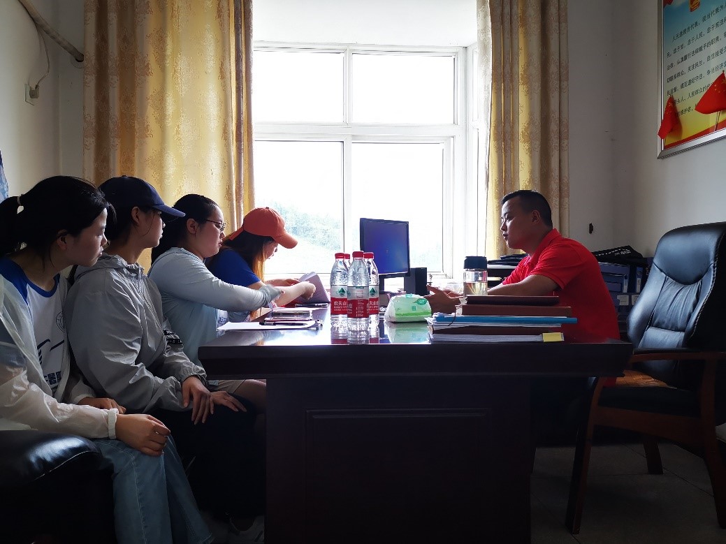为了第二日调研的顺利进行,抵达目的地后,各分队经过短暂休息调整,就迅速前往村党支部,村支书热情接待了团队成员,并提醒队员们,由于夏季天气炎热,多数居民选择居家,因此队员们需要上门走访进行问卷调查,且该村居民多为中老年人群,在访谈时需将问卷中的专业术语进行解释。随后,在村支书带领下,队员们参观了村庄及相关重点工程。