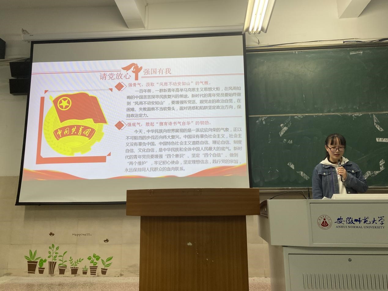 徐嘉祺带领大家共同观看共青团员和少先队员代表在庆祝中国共产党成立100周年大会上的集体献词。在激昂澎湃的致辞中,大家感受到了中国新一代青年青春热血的力量和党对青年一代勇担重任、努力奋斗推进中华民族伟大复兴事业的殷切期盼。