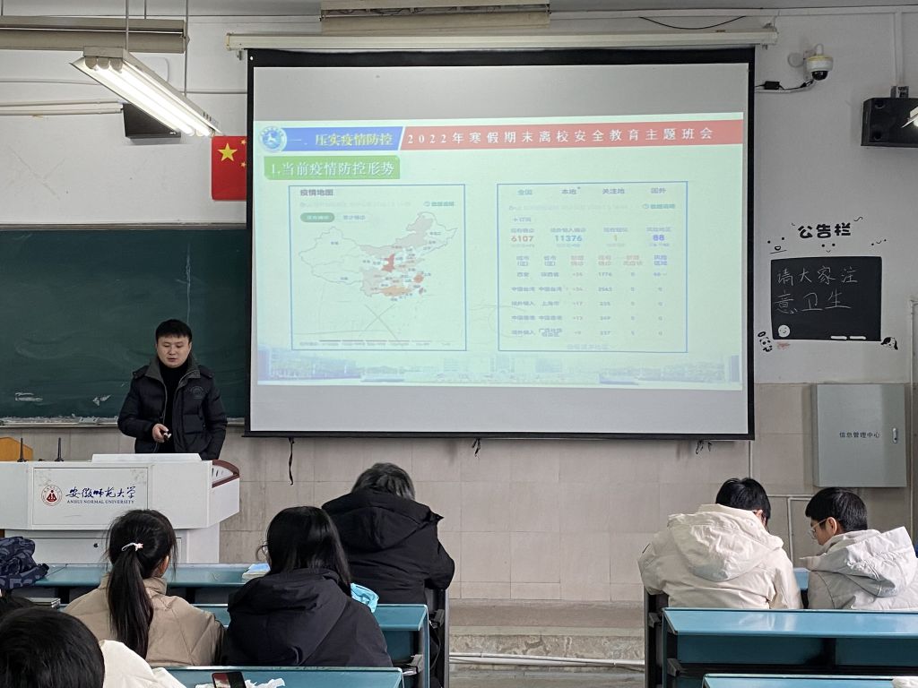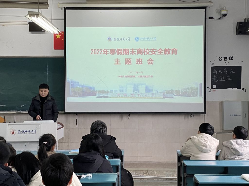 耿艺榕 刘少杰) 为做好期末及寒假安全教育,增强学生安全防范意识,1月6日上午,20级城乡规划和20级土地资源管理专业召开寒假离校安全教育主题班会,会议由辅导员刘少杰主持,20级城乡规划和20级土地资源管理所有学生参与。