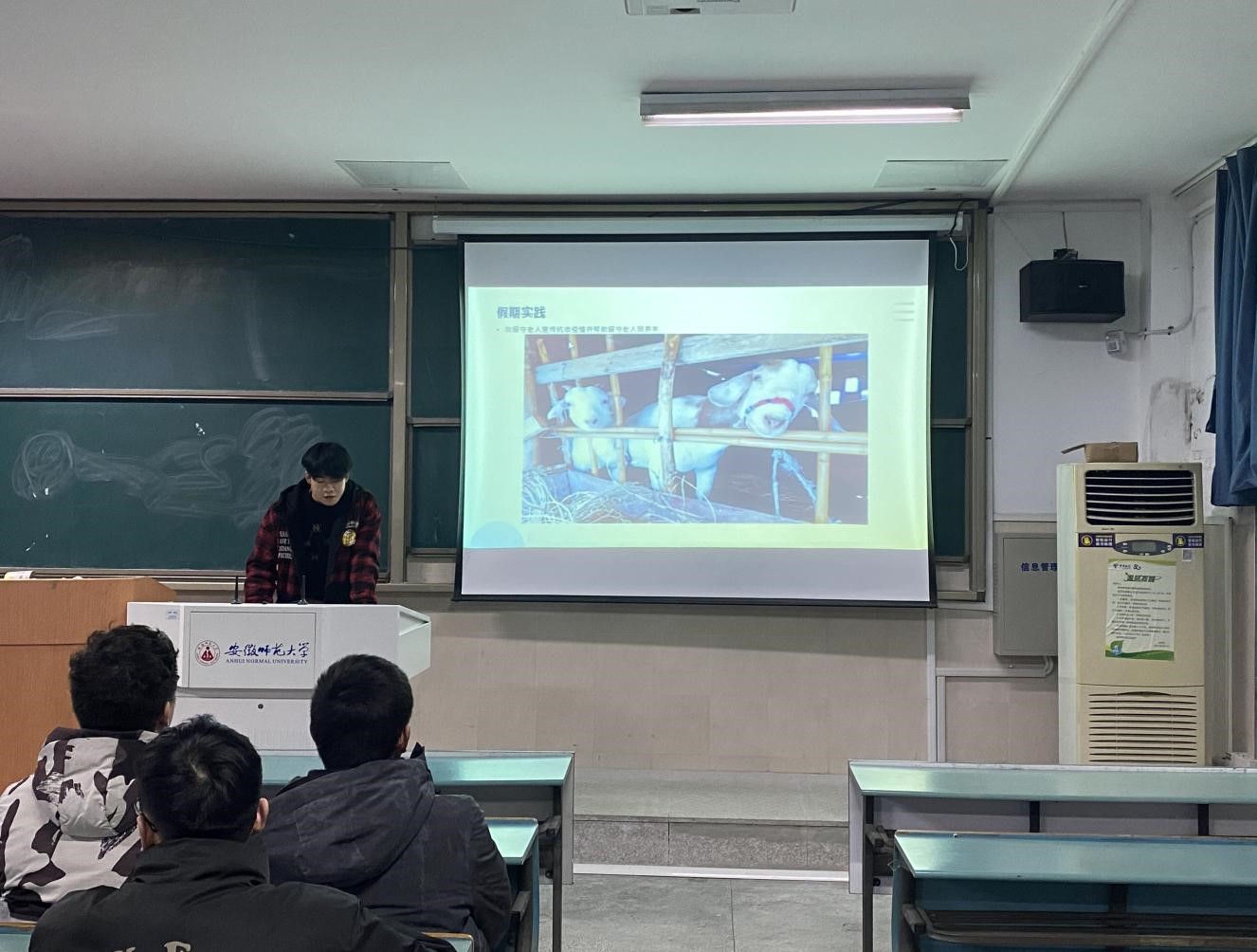 第一团小组组长李冬冬分享了他在寒假期间向家乡中因疫情而无子女陪伴在身边的留守老人宣传疫情防控知识、并帮助他们饲养家畜的故事。他提到,通过此次实践活动,不仅给自己增加了不同的人生经历,更让他体会到家人的重要性。他的分享也让同学们深深感受到疫情形势下如何更好的对独居老人的做好人文关怀是非常值得大家关注关心的问题,在今后我们也要多关注身边的类似的现象,主动对他们伸出援助之手,做一个有温度的人,真正的做到暖人心。第二团小组组长徐君亮分享了他观看冬奥会的感受。他提到,我国短道速滑混合接力获得了冬奥开幕以来我国首金,这份荣光不仅属于奖台上的运动员们,更是每一位中国人的骄傲。徐君亮从中深刻体会到了奥运健儿为了“更高、更快、更强”而不断努力训练,在比赛中绽放自己的光彩,而我们也要在日常生活中严格要求自己、不断超越既定的目标,遇见更好的自己。接下来,其他三个团小组的成员也分别向大家分享了自己的暖冬故事,一个个暖人心的故事丰富了大家的漫长的寒假生活。