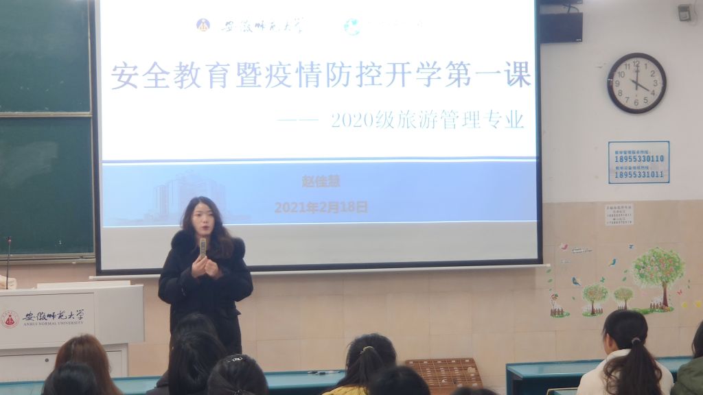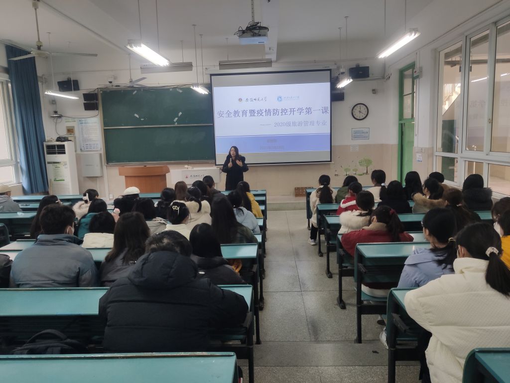 舒玉茹)新学期,新气象,新挑战。为激发学生昂扬斗志,帮助学生确立职业规划意识以及在疫情常态化发展下,提高安全意识,尽快适应新学期的校园生活。2022年2月19日晚,2020级旅游管理专业召开安全教育暨疫情防控“开学第一课”主题班会。班会由辅导员赵佳慧主持,2020级旅游管理全体同学参加。