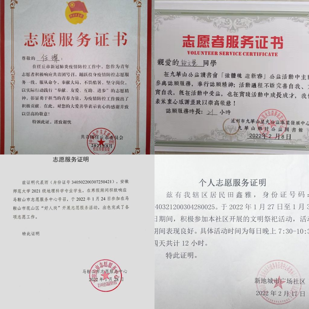 在疫情防控常态化的当下,地师2班的多名同学深入防疫基层,钟金艳、周悦等同学参加核酸检测和预约登记志愿服务,为保卫人民群众健康贡献力量。此外,还有部分同学参加了社区开展的文明祭祀活动、“好人岗”等其他志愿服务活动,充分发挥了青年大学生在志愿服务中的先锋模范作用。