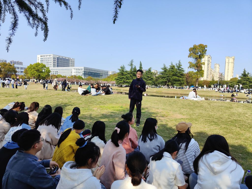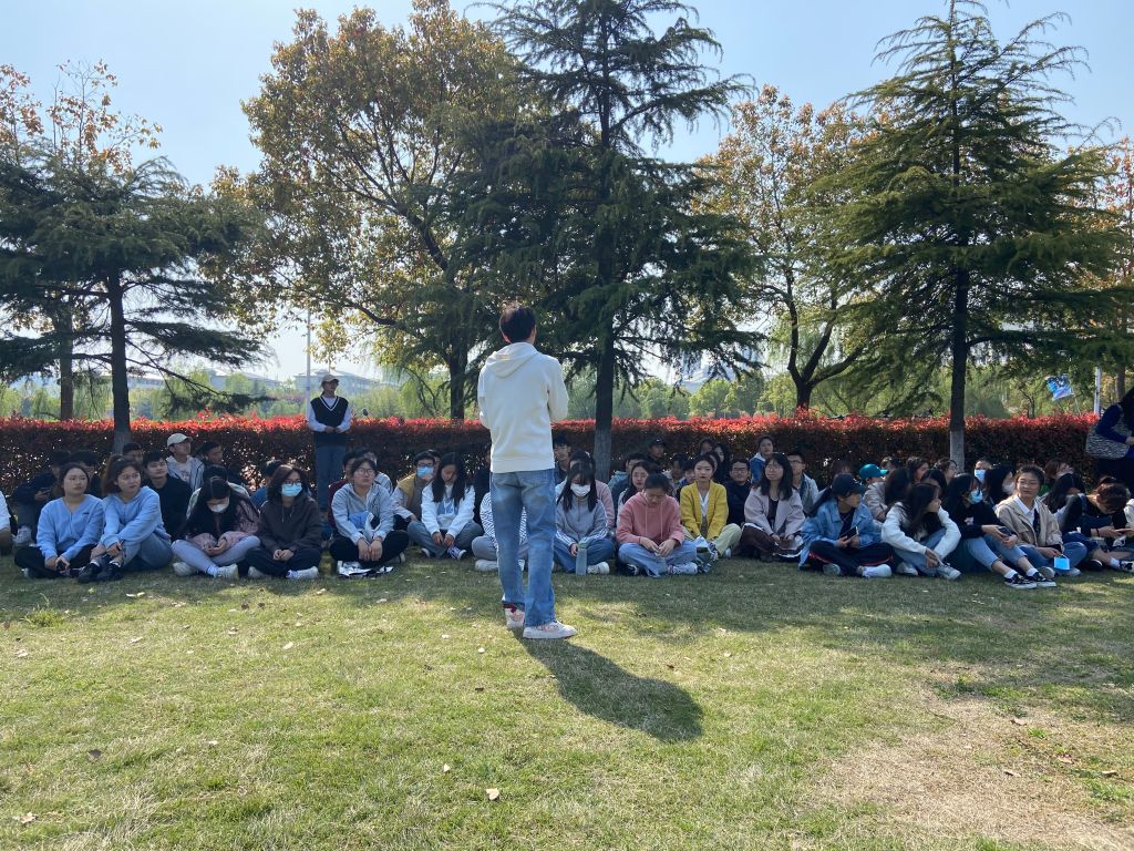 由于疫情防控的要求和清明踏青的传统,本次团日活动在户外进行。沐浴着春日的阳光,呼吸着春风中花草的香味,地师一班全体同学在草地上横坐三排,根据先前的准备工作,八个团小组各派团员代表分别就挖掘英烈故事,传承英烈精神以及结合建团100周年,学习党领导下的百年青年运动史的主题进行演讲。团员代表铿锵有力的话语击入每个同学灵魂深处,引发了同学们激烈的讨论,那些革命先烈伟大的革命故事和共青团的光辉奋斗史让同学们深受感动。陈鹏飞同学讲述了“四行仓库保卫战四天四夜,八百战士浴血奋战“的故事,中国人民抗战到底的坚定意志跨越百余年,在现今社会仍旧熠熠生辉。