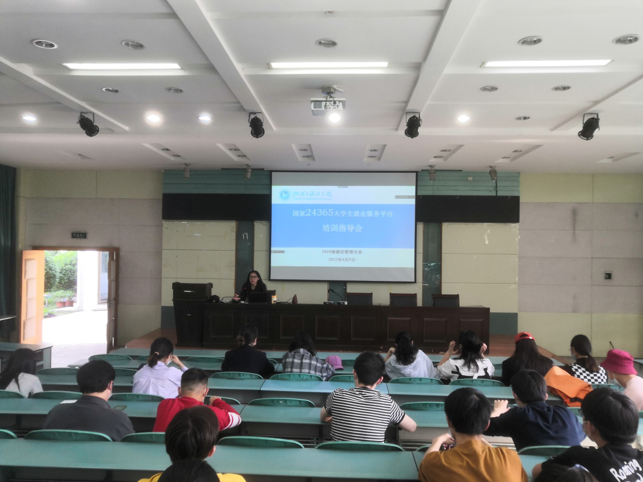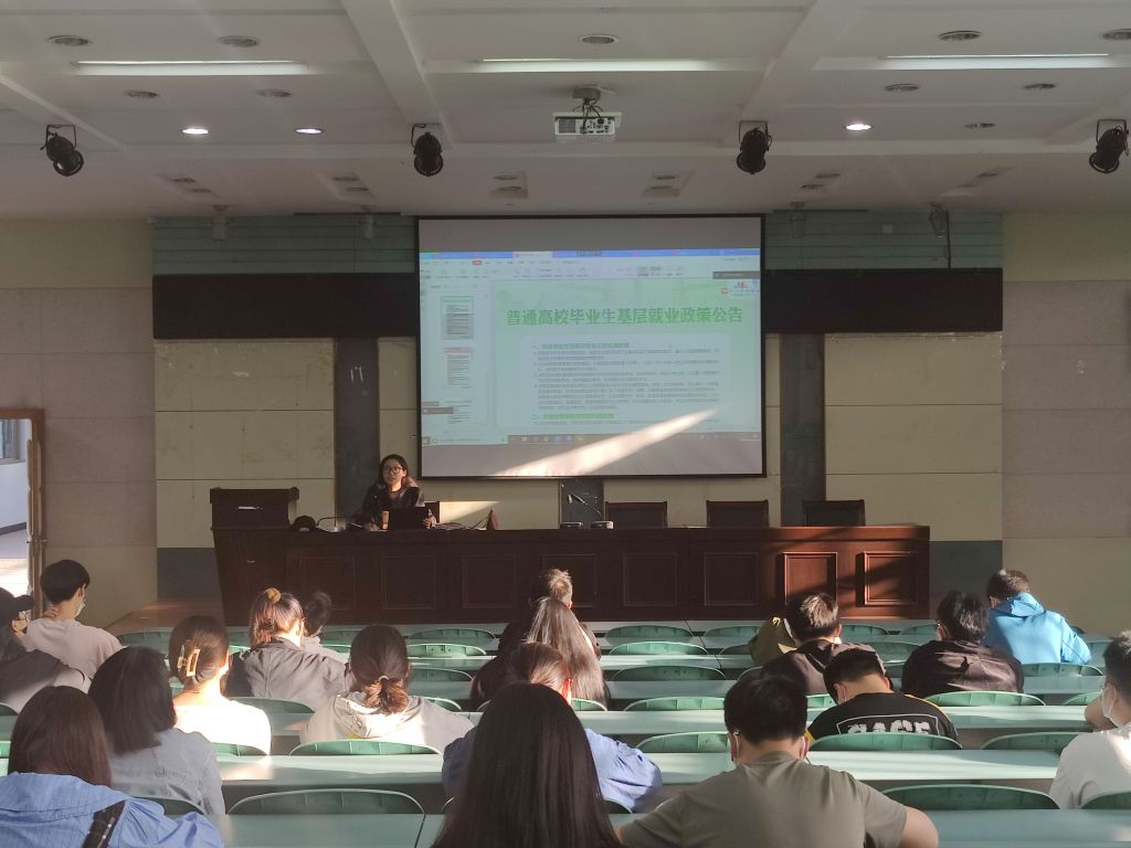 实验楼101报告厅召开“24365大学生就业服务平台”培训指导会暨就业政策解读会。会议由辅导员陈祥云主持,全体在校学生线下参会,校外实习就业学生通过腾讯会议线上参会。
