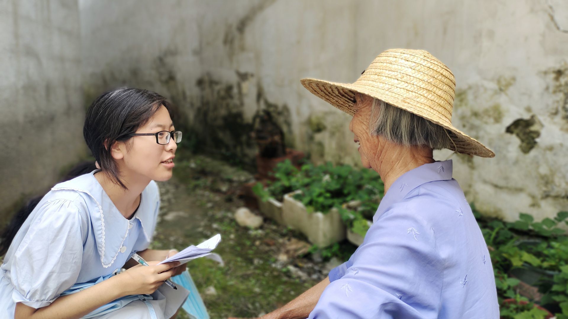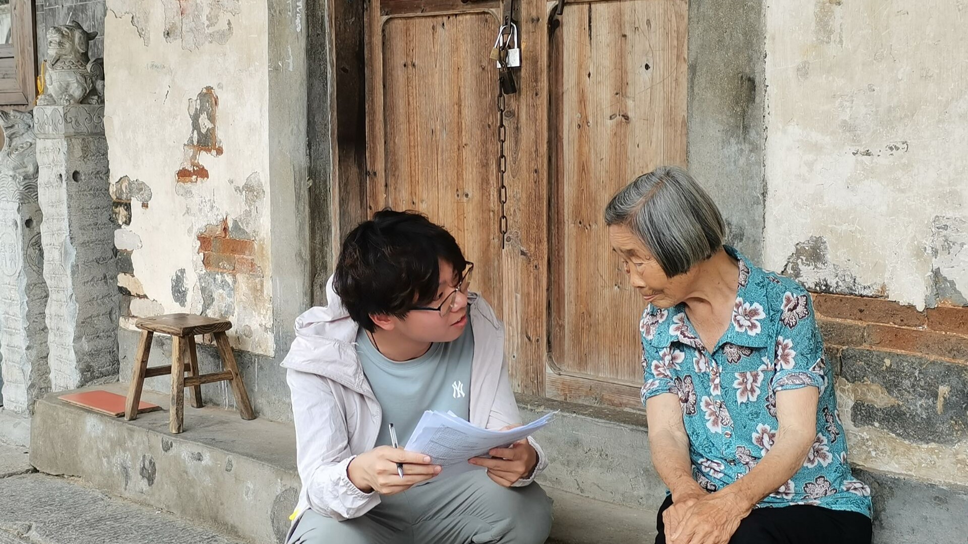 实地调研分为两组,分别向居民和游客分发问卷。在调研过程中,团队了解到大部分游客是来自省外的中老年人,在问卷填写过程中普遍给予了唐模村高度评价,特别是在自然风光和乡土风情方面。此外,国家级非物质文化遗产传统戏剧——黄梅戏与传统美术——徽州三雕也丰富了游客的旅游体验。居民们对团队的调研工作表示理解且支持,与队员热切交流村落的历史、以及疫情影响下的发展现状。访谈结束后,队员们认真记录整理。