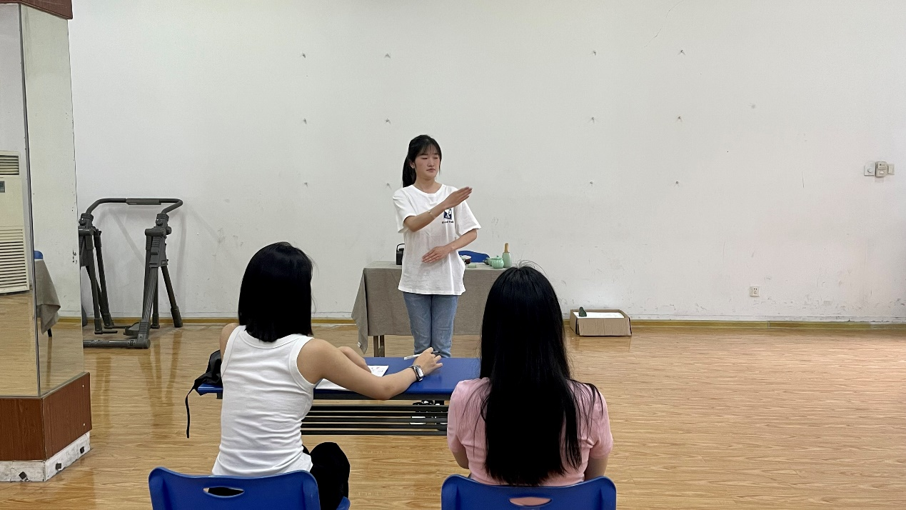 为了检验同学们的学习成果,本社团于5月21日16:00举行了礼仪操展示和茶艺表演的比赛。同学们的成果展示真是让人目不暇接。流利的动作,笃定的眼神无一不展现出同学们对此次活动的用心。