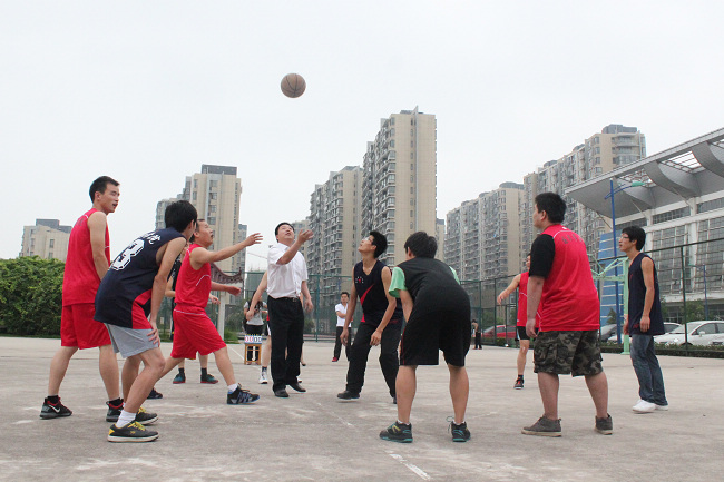 分工会携手院团委,于6月9日下午在花津校区北体育馆成功举办了欢送2013届毕业生师生篮球友谊赛。院党委书记吴春雷、副书记罗振、院工会主席赵冬梅观看了比赛,院教工篮球俱乐部代表队和2013届毕业生代表队参加了比赛,吴春雷书记亲自为球赛开球。